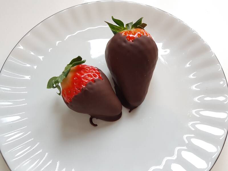 Lek de aardbeien op een bakpapier en als je alle aardbeien gedaan hebt zet je ze in de koelkast. Zo kan de chocolade afkoelen en stollen. Na een uurtje zijn je chocolade aardbeien klaar om op te eten.