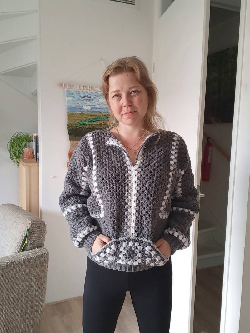 Na een aantal hexagon vesten is het tijd om er een trui van te gaan maken. Dit idee kwam ineens in me op en het resultaat is fantastisch!